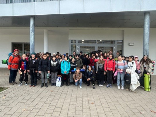 Am letzten Donnerstag, den 16.10.25 ging es bei schönem Wetter und mit viel guter Laune für die beiden 6. Klassen zu einer ganz besonderen Herausforderung – einer Waldübernachtung. Drei Tage zuvor hatten sich die Kids im Unterricht für diesen Ausflug mit dem notwendigen Survival-Wissen und der Vorbereitung der Ausrüstung auseinandergesetzt und vorbereitet. Bepackt mit Isomatte, Schlafsack und einem reichlich gefüllten Rucksack ging es mit Heiko Fleischhacker, unserem Erlebnispädagogen, in die Natur. Nach einer vierstündigen Wanderung durch Feld und Flur erreichten wir unseren Lagerplatz mitten im Wald. Nach einer stärkenden Vesperpause begannen die Kinder in kleinen Gruppen ihr Nachtlager aus Planen und Seilen selbst zu bauen. Der Kreativität waren hierbei keine Grenzen gesetzt. Natürlich blieb auch viel Zeit für das gemeinsame Spielen und interessante Erkundungstouren rund um das Lager. Abends gab es für alle am Feuer leckere Grillwürstchen, die sich alle zufrieden schmecken ließen. Nach Einbruch der Dunkelheit gab es dann die Mutprobe „Wolfspfad“, bei der jedes Kind einen Weg in der Dunkelheit ging, der durch viele kleine Lichter die Richtung vorgab. Das war eine große Herausforderung, welche den Kindern zeigte, was in ihnen steckt. Beim gemeinsamen Ausklang dieses Tages gab es interessante Gespräche am Feuer. Bald schlüpften auch die Letzten in ihre warmen Schlafsäcke für die Nacht unter freiem Himmel. Am nächsten Morgen stiegen dann noch recht müde, aber zufriedene Kinder aus ihren Nachlagern. Viele hatten eine interessante Geschichte über ihre Nacht im Wald zu erzählen. Nach dem Frühstück räumten wir gemeinsam das Lager, packen unsere Rucksäcke und dann ging es zurück in Richtung Schule. Dieser Ausflug hat allen Schülerinnen und Schülern wieder einmal gezeigt, was man in der Gemeinschaft alles schaffen kann. Besonders stolz bin ich auf den Mut der Schüler, welche die verschiedenen Herausforderungen angenommen und gemeistert haben. Die persönliche Bereicherung und der Stolz über die eigene Leistung, kann den Kindern niemand mehr nehmen. Es war ein rundum grandioses Erlebnis für die beiden Klassen. Ein großer Dank geht an Heiko und Dirk Fleischhacker, ohne die unsere Waldübernachtung nicht möglich gewesen wäre. Die Klasse 6a & 6b, sowie ihre Klassenlehrer sind begeistert, dass dieses außergewöhnliche Outdoor-Projekt so gut verlaufen ist, und freuen uns auf neue Abenteuer mit unseren Klassen.