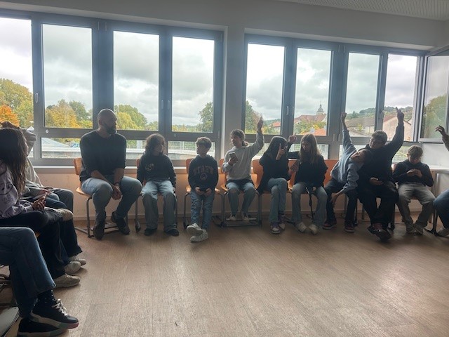 Am Dienstag, den 30.09.25 fand in der ersten Etage des Neubaus die Patenschaftsfeier der Klassen 5a & 6a statt. Die 6. Klasse bereitete den neuen Fünftklässlern einen herzlichen Empfang. Nachdem zwei SchülerInnen der Klasse 6a die „Neuen“ begrüßt hatten, wurden symbolisch die beiden Papierhände der jeweiligen Paten zusammen auf ein Banner geklebt. Somit bekam jeder Fünftklässler einen bzw. zwei Schulpaten zur Seite gestellt, der ihr bzw. ihm mit Rat und Tat zur Seite stehen wird. Danach setzten sich die jeweiligen Paten mit ihrem „Schützling“ zusammen und lernten sich mit Hilfe gegenseitiger Steckbriefe besser kennen. Danach ging es dann für die Fünftklässler mit einem Laufzettel auf das Schulgelände, um dort an verschiedenen Stationen von ihren Paten alle wichtigen Regeln und Informationen über das Schulleben an der Werkrealschule zu bekommen. Zum Abschluss war noch Zeit sich beim gemeinsamen Spielen besser kennen zu lernen.