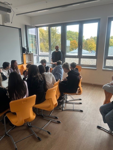 Am Dienstag, den 07.10.2025 wurde das Thema Mediennutzung am praktischen Beispiel mit dem eigenen Handy vertieft. Clemens Beisel, Diplom Sozialpädagoge vom Stadtjugendring Pforzheim klärte über die Nutzung und Gefahren des Handys auf. Anschaulich und spielerisch bekamen die Schülerinnen und Schüler einen vertiefenden Einblick in die Gefahren bei der Handynutzung und der sozialen Kommunikation über Whats-App, TikTok & Co. Durch das Ausprobieren am eigenen Handy erhielt die Klasse viele Tipps zum Schutz ihrer Daten im Internet. Mit einem Quiz wurden die neu gelernten Inhalte wiederholt und gefestigt. Wir bedanken uns sehr bei Herrn Beisel, für diese interessanten und lehrreichen Unterrichtsstunden.